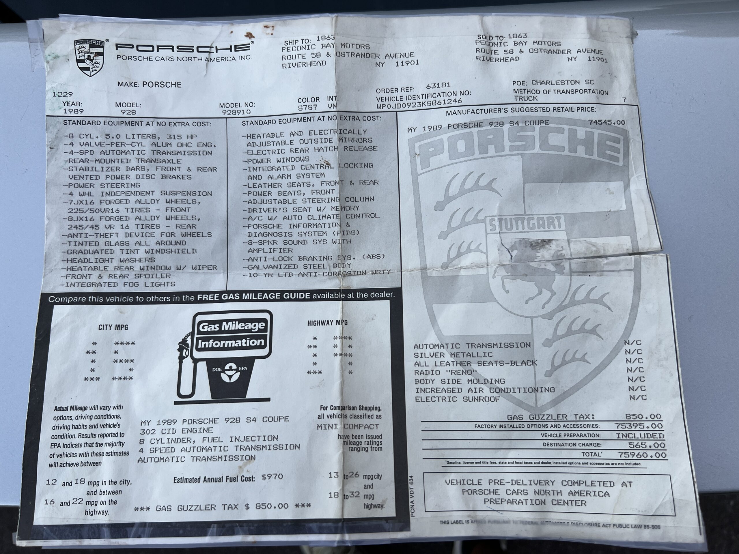 1989 Porsche 928 S4, major service completed by Don Jackson Porsche, to include new timing belt, AC, Brakes, oil change, etc, Gray on Black Leather, Books, Records, 103k mi, working cruise control, cold AC, power sunroof, front and rear spoilers, clean garaged car, drives like new.